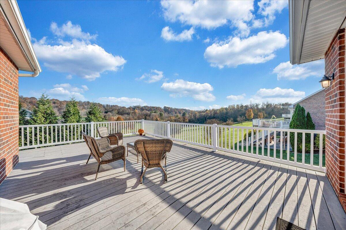 Spacious brick ranch located in the heart of Botetourt's Ashley Plantation features level living with tons of amenities to simplify life. This home has an oversized master on the main, his and her closets, nine-foot ceilings, crown molding, gleaming hardwood floors, entry-level laundry, a formal dining area, and two additional bedrooms and plantation shutters throughout. Mountain and golf course views from the large deck with a lower stone patio. The basement area is perfect for an in-law suite with huge space for entertaining, storage, and a den with built-in bookcases. Seller offering 1 year home warranty.